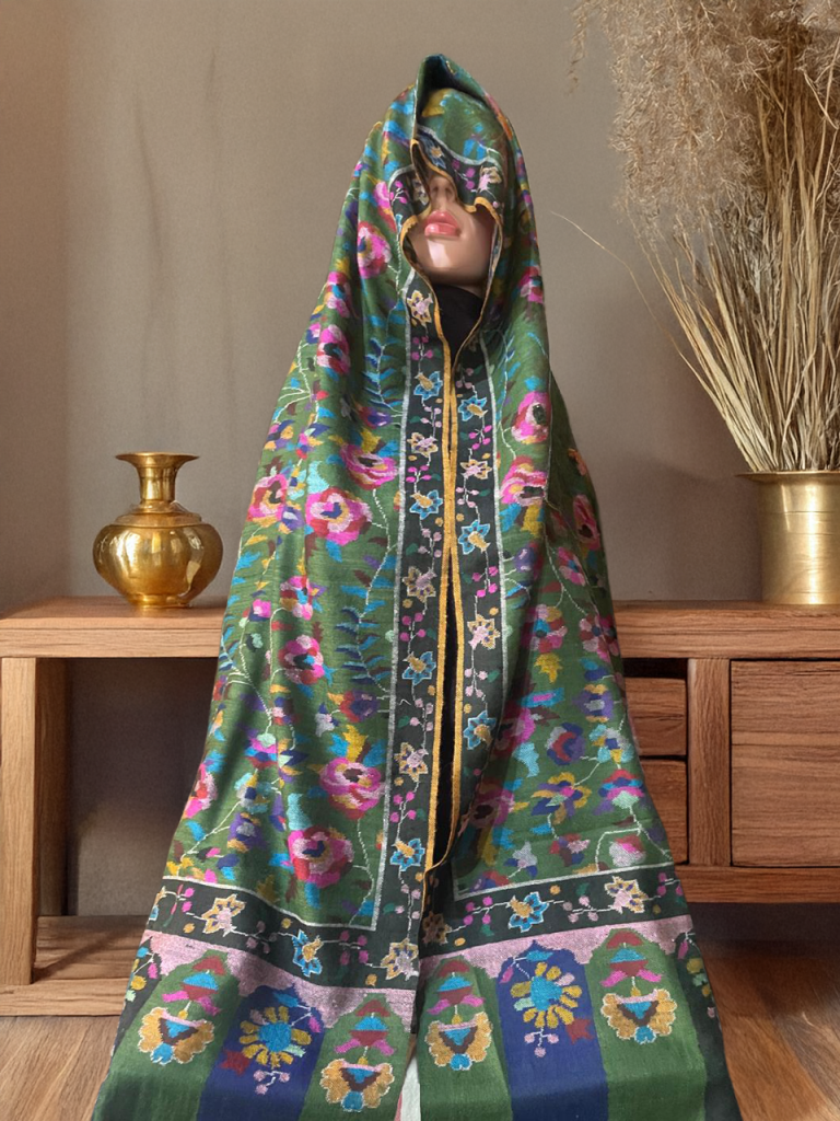 Every detail is spun, woven, and embroidered by skilled Kashmiri artisans.