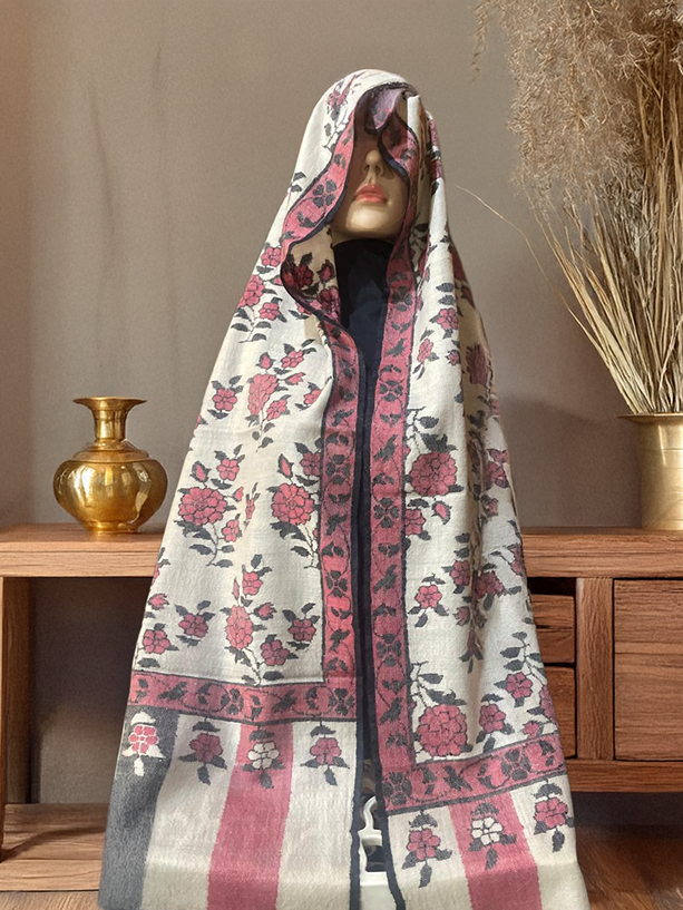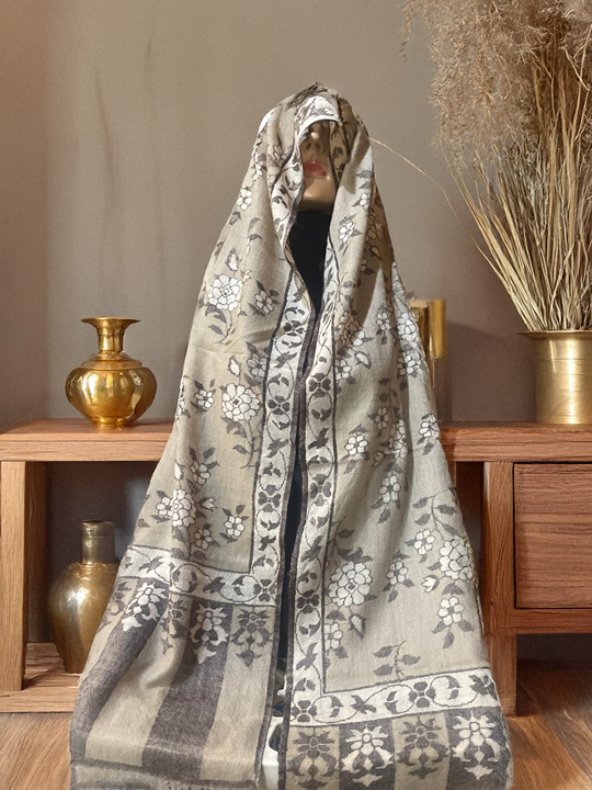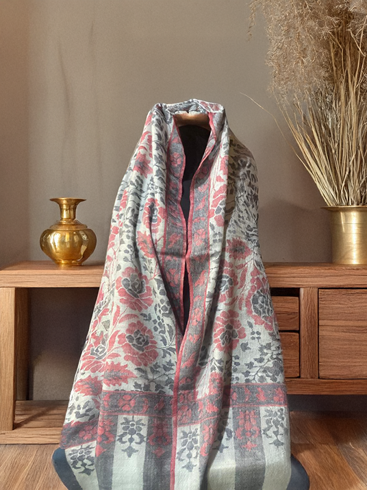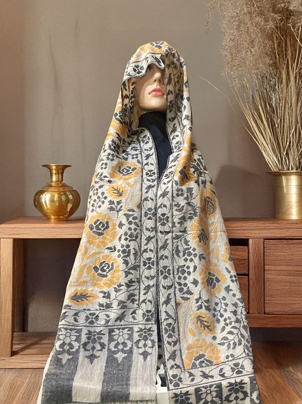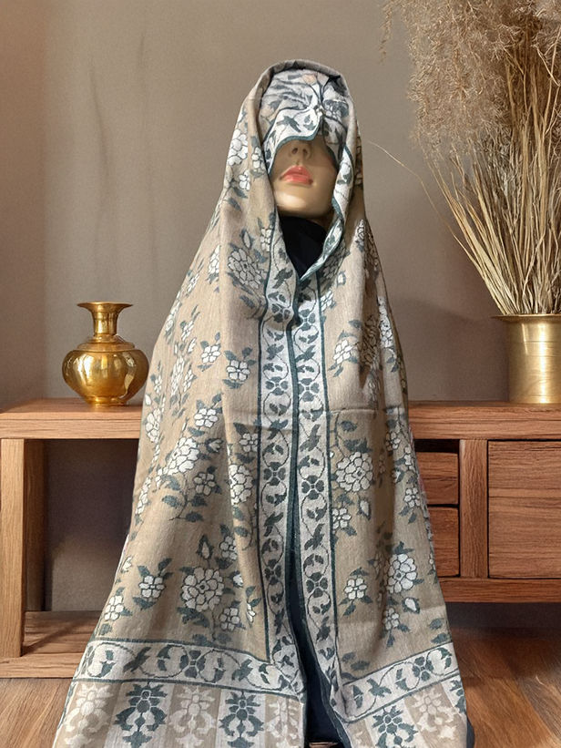 - Softly woven floral motifs integrated with classic Kashmiri borders.